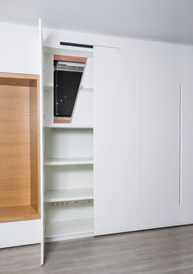 Discreet verborgen in de muur: alleen de aanzuig- en uitblaasroosters zijn zichtbaar